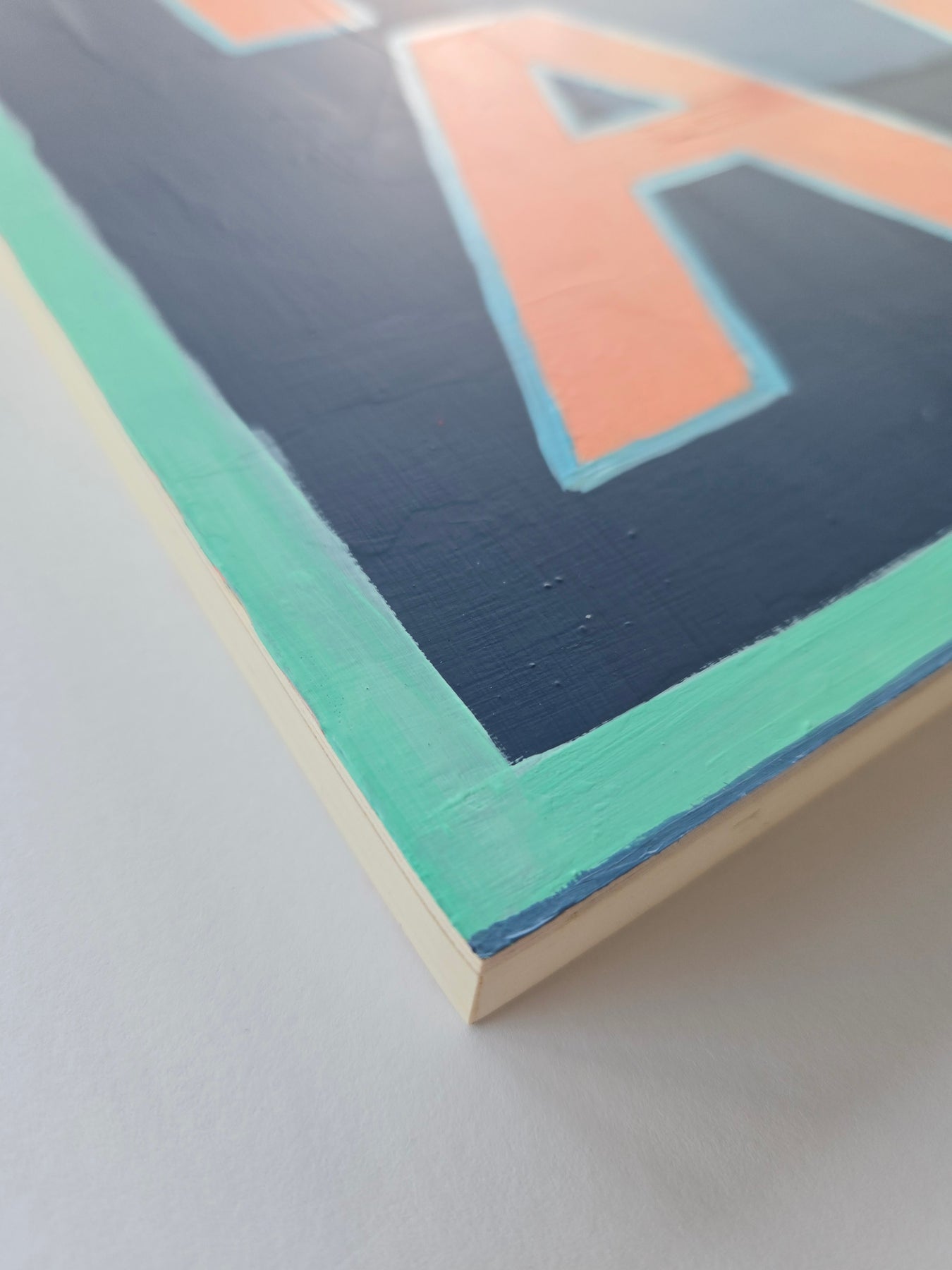 This is an 18"x24" painting on a 7/8" deep wood panel. I used many, many layers of paint to create subtle design elements and get the colors just right.